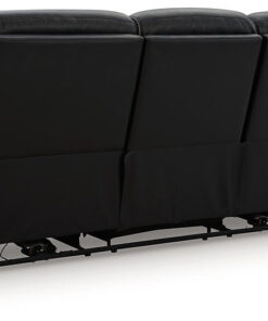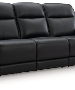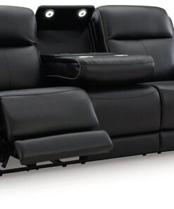 Relax like never before. This power reclining sofa offers the look and feel of leather at a comfortably affordable faux leather price. With chic tailoring and stylish welting, it creates a sophisticated presence and makes a lasting impression. When you’re ready to be pampered, indulge in the adjustable headrests, heated seats and air massage, all at the touch of a button. And did we mention the sofa’s drop-down table with LED lights and dual cup holders? Chill time just got a whole lot sweeter.