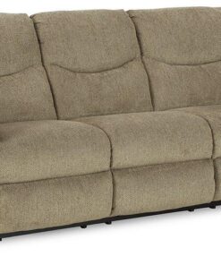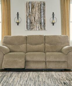 Sincere in its styling, this reclining sofa invites a relaxed sensibility into your space. Its neutral upholstery has a universal appeal, with pull-tab reclining making it easy to kick back in comfort. Providing high-quality functionality at an affordable price, this sofa marries well with a myriad of design aesthetics.