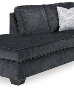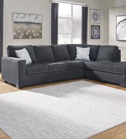 If style is the question, then this sectional is the answer. Sporting clean lines and sleek track arms, the decidedly contemporary profile is enhanced with plump cushioning and a chenille-feel upholstery, so pleasing to the touch. Sure to play well with so many color schemes, this sectional in richly neutral alloy includes a pair of understated floral pattern pillows for fashionably fresh appeal.