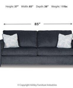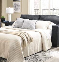 If style is the question, then this sofa sleeper is the answer. Sporting clean lines and sleek track arms, the decidedly contemporary profile is enhanced with plump cushioning and a chenille-feel upholstery, so pleasing to the touch. Sure to play well with so many color schemes, this sofa sleeper in slate gray includes a pair of understated floral pattern pillows for fashionably fresh appeal. Pull-out queen mattress in quality memory foam comfortably accommodates overnight guests.