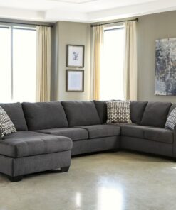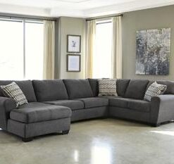 When it comes to incorporating a relaxed sensibility into your home that’s beautifully on trend, this sectional in slate gray makes it look effortless. With its gently weathered hue and plush feel, the rich upholstery is simply a dream. Grid pattern stitching on the seat cushions is an inspired touch. Subtle roll arms give the clean-lined, contemporary profile a softened effect.