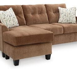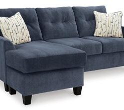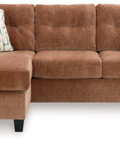 Urban contemporary meets mid century (with a pop of trend-right color) in this sofa chaise. Supremely soft upholstery, teeming with luster and movement, finesses the piece with just the right touch. Gently flared arms and tufted back cushions let you bask in the glow of superior style. Can you think of a better spot to entertain friends or spread out in sheer comfort? We’ll wait.