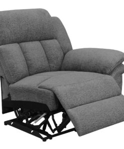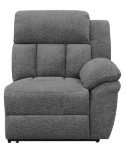 This left-arm facing recliner brings customizable comfort to modular sectional arrangements with a smooth manual reclining function. Upholstered in soft charcoal fabric, it features plush padding and a channel-tufted backrest for optimal support. A padded armrest enhances relaxation, while the sturdy reclining mechanism allows for easy adjustments. Designed for seamless integration, this piece provides a cozy and functional seating option.