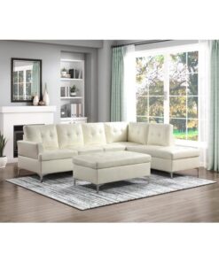 Homelegance – Barrington 3-Piece Sectional with Right Chaise and Ottoman in White – 8378WHT*3