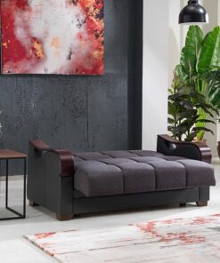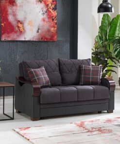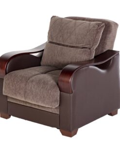 The Bennett Collection is a classic living room ensemble with modern sensibilities. Transitional styling features both traditional and modern design elements, such as diamond piping stitched on removable back cushions, button-tufting covering its seat, and a mix of leatherette and fabric upholsteries with polished wood armrests. Each piece in the collections offers built-in storage space and converts easily into a sleeper bed for convenience that transitions from day to night. Create a complete living room set or disperse the pieces throughout your home for a cohesive look in every room.