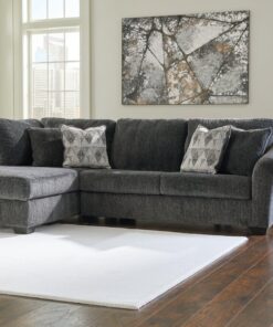 Bring fashionable function to the forefront with this sectional with chaise. A transitional arm design adds flair to the frame, incorporating subtle visual interest into the otherwise clean-lined silhouette. Dress it up or down. In a richly versatile neutral, this sectional appeals to a variety of style personalities.