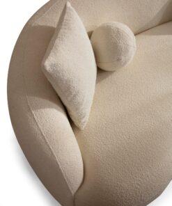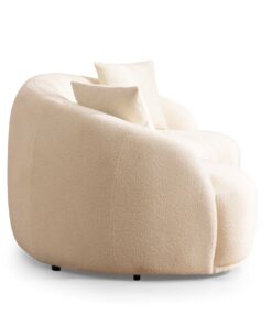Introducing our Bonita Boucle Sofa Loveseat Set, a perfect combination of style and comfort. Crafted with the utmost attention to detail, this set features luxurious boucle upholstery, known for its softness and texture. The stunning curved structure of this sofa loveseat set adds a touch of elegance to any room. The Ivory color for this set is carefully selected to provide a minimal yet post-modern look. This set features four square pillows and three round pillows, creating a delightful balance of shapes and coziness.