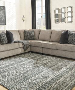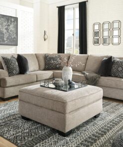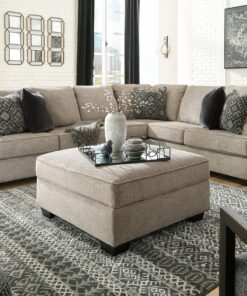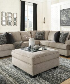 Whether your vision is clean and contemporary or cozy modern farmhouse, this sectional in a stone-tone neutral upholstery has the corner on style. Merging ultimate comfort with striking good looks, this chic sectional includes five coordinating accent pillows for that much more feel-good allure.