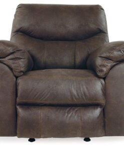 Rock the cool look of leather minus the hefty price tag with this rocker recliner. Rich with tonal variation, the indulgently soft upholstery sure looks like the real thing. And talk about indulgent comfort. Double stuffed armrests and sumptuous cushions cradle and support in all the right places. The recliner’s distinctive scooped stitching adds contemporary flair.