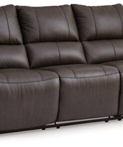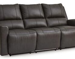 Experience modern luxury with this power reclining sofa. The soft-to-the-touch leather and faux leather upholstery brings ultimate relaxation at a price you can afford. With sleek arms and a plush, pillowy back, the sofa merges comfort and support with a high-style design.