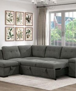 Your home’s living room serves as a hub of activity which is deserving of a seating arrangement that presents functional and decorative versatility, the Brooklyn Park Collection fits that bill. Transitional styling with textured gray fabric upholstery creates the classic look while the function of the collection comes in the form of the right-side pull-out bed and two hidden lift-top storage compartments located under the left-side end chaise and right-side sectional arm.