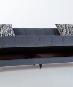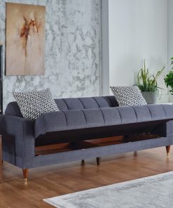 The Camila Sofa brings timeless style to the heart of the home. A classic profile upholstered in a textured performance fabric with button tufting and gold-capped cherry wood legs creates a rich scholarly appearance with a bold modern flair. This three-seat sofa houses a spacious built-in storage unit for stashing blankets and more and converts quickly into a comfortable sleeper, so you always have space for overnight guests.
