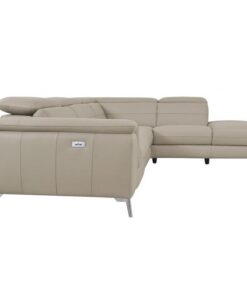 The ultra-low profile of the Cinque Collection is the epitome of clean Italian design. Headrests are adjustable to create a break in the profile of the sofa, while the end chair utilizes power reclining to provide additional support. The modified chaise provides ample space for relaxation whether seated or prone. Chrome finished legs complete the look of this sectional seating group. Available in taupe or light gray all leather.