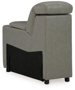 Truly putting high design into recline, this power reclining sectional with chaise with gray leather match upholstery proves that just because you’re a recliner doesn’t mean you have to look like one. Deceptively beautiful, its ultra clean-lined aesthetic is as cool and contemporary as they come. Low-profile back has a super swank look. When you need more support for your head and neck, the press of a button engages the Easy View™ power adjustable headrest, designed to let you lean back and still have a primo view of the TV. Ever-so-subtle curves and stunning stitching perfect the aesthetic.