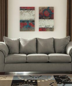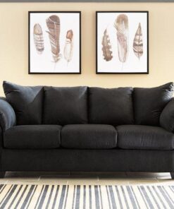 Talk about fine lines and great curves. That’s the beauty of this standout sofa—made to suit your appreciation for clean, contemporary style. A striking flared frame, comfy pillow top armrests and an ultra-soft upholstery that holds up to everyday living complete this fashion statement.