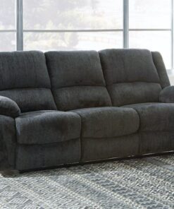 Built for luxury, this power reclining sofa lets you kick back in reliable style. The thick, softly textured chenille upholstery provides a comfy surface on which to lounge. With bustle back construction and thickly cushioned armrests, this piece gives you the dependable support you need to unwind while the handy USB port provides the power to keep your devices going.