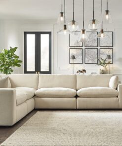 Down with uptown style. This sectional goes to town with a high-design aesthetic, sleek sophistication and sumptuous comfort that are temptingly affordable. Wide track arms, softened by plush side pillows, offer a welcoming look and feel, while back pillows and seat cushions with fluffy feather fill bring added flair and indulgence. Best of all, the modular design lets you stage the pieces solo or group them in various configurations to suit your mood.