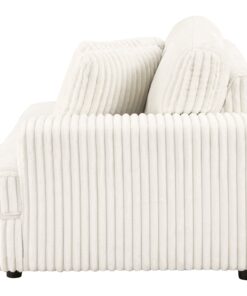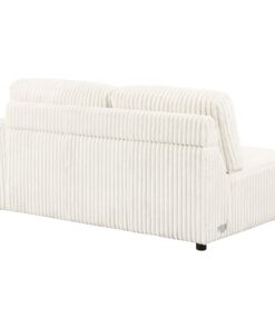 Experience ultimate comfort with the RAF cuddler, designed for cuddling and relaxation. Upholstered in ivory wide corduroy, this piece includes two pillows for added support and coziness, making it a great addition to your sectional.