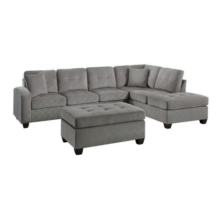 Homelegance – Emilio 3-Piece Reversible Sectional with Ottoman in Gray – 8367TP*3