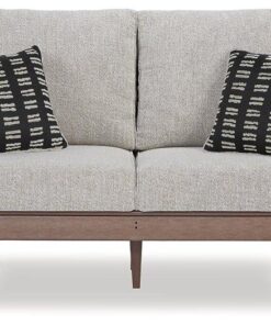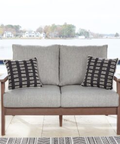 Get back to nature with the relaxed styling of this outdoor loveseat with cushions. Crafted of MEGA TUFF™ HDPE material, it combines the exceptional durability and weather resistance you need with the ‚Äúwood look‚Äù you love. Rest assured, the cushions are wrapped in comfortable and carefree Nuvella® fabric, leaving you plenty of time to sit back and smell the roses.