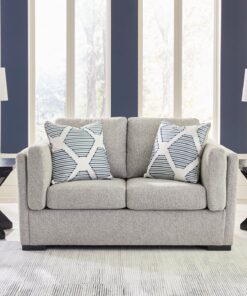Casual contemporary style, meet carefree lounging. With this loveseat, you don’t need to sweat the small stuff. Thanks to its fresh navy hue, you can stay right on trend when you kick back and relax. And the arm bolster pillows keep you extra comfy. Time for a touch-up? Machine-washable Next-Gen Nuvella™ covers make upkeep a breeze.