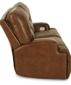 Master statement-making contemporary comfort with this power reclining sofa. It displays a striking yet streamlined profile, with auburn-hued leather match upholstery balancing natural beauty and refined design. Adjustable headrests and USB charging polish off this richly crafted piece.