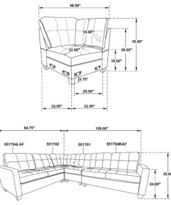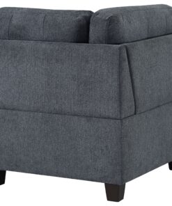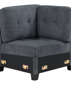 Complete your modular sectional with this corner chair, designed to maximize seating and style in your living space. Upholstered in a beautiful fabric, this chair seamlessly blends into transitional decor while offering exceptional comfort. The corner design is perfect for connecting other sectional pieces, creating a cohesive L-shaped configuration. Foam-padded cushions provide plush seating, supported by a durable wood frame that promises long-lasting use. The chair’s subtle tufting and chunky wood feet add a touch of elegance, making it a stylish addition to any room.