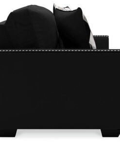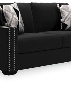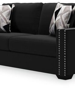 Raise your standard of living with this sofa in onyx black. Reserved exclusively for those with a penchant for high-glam home decor, this ultra-chic sofa is dressed to impress with a clean-lined profile, 2-over-2 cushion styling and sleek track arms punctuated with nailhead trim. Easy on the eyes and alluring to the touch, this decidedly contemporary sofa is covered in a low-pile soft velvet that’s impossible to resist. Abstract-patterned throw pillows enhance the posh appeal.