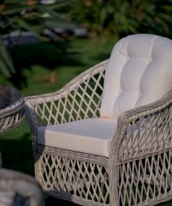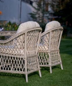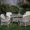 Whether you’re hosting a garden party or a barbeque, the Glory Oval Outdoor Dining Set creates the perfect setting for entertaining. This outdoor dining set comes complete with six matching armchairs and one large oval table, so you’ll have all the room you need for friends and family alike. The set features a wicker table and chairs with a polished glass tabletop and comfy cream colored cushions for a look that transitions seamlessly from season to season and comfort that does the same.