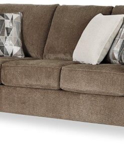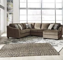 Looking to serve it up family style? Sporting clean, contemporary lines and a highly textural upholstery for a warm, cozy feel, this sectional delights with its city chic aesthetic and earthy appeal. Taking neutral to a new level, the heavy textured chenille upholstery in teak brown is sure to blend beautifully into your scene. Crisp and clean box cushions and sloped, flared arms enhance the inviting feel and modern appeal.