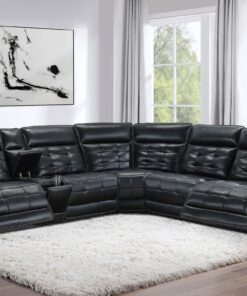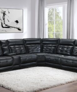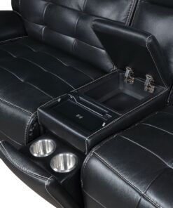 Experience ultimate luxury and relaxation with this three-piece dual power sectional sofa, crafted with top grain black leather that exudes elegance and durability. The contrast stitching and modern grid tufting design add a touch of sophistication, highlighting the luxurious material. The dual power functionality with power recline and power headrests offers customizable comfort, allowing you to adjust the position of the sectional to your liking with ease. The sectional includes a modern console that combines functionality with convenience, featuring hidden cup rests with removable stainless steel cup holders, a soft-close storage compartment, a USB-C charging port, and a wireless charger. Recline fully and find your perfect angle for ultimate relaxation with this beautifully designed sectional.