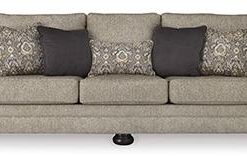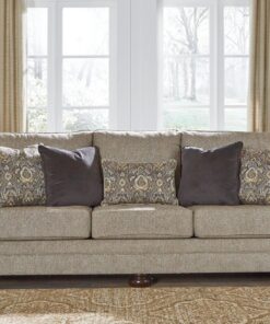 This sumptuously styled sofa proves that a richly traditional look doesn’t have to break the bank. Flared effect gives the classic roll arms a relaxed feel, while the choice of a plush chenille upholstery in oatmeal is earthy elegance at its best. Distinctively turned bun feet in a dark finish add to the sofa’s substantial presence.