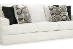 Craving casual refinement? This sofa has you covered. Its decidedly contemporary frame cradles sizable cushions in an ultra-soft neutral hue, lightening the mood in your living room with simple style and everyday comfort. Solid and geometric accent pillows perfect the chic-meets-cozy vibe.