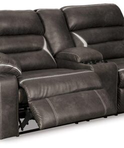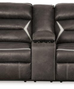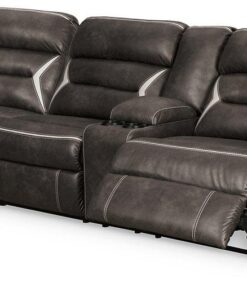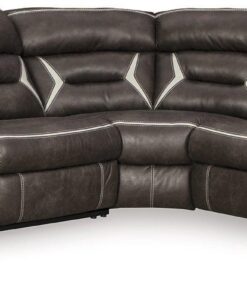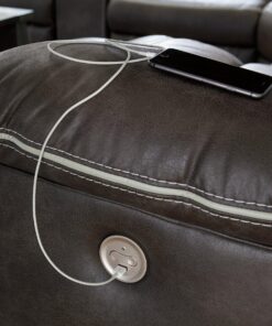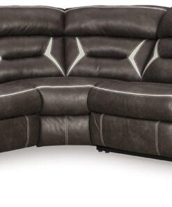You could play it safe. Or you could choose to stand out in the crowd with this brilliantly styled sectional with power. Ultra cool, ultra contemporary and ultra comfortable, this fashion-forward sectional sports a fabulous faux leather enhanced with contrasting stitching that’s right on point. Rest assured, sumptuous pillow top armrests and sleek channel cushioning feel every bit as good as they look. Enlightened elements include a power control with USB plug-in and blue LED lighting (by the cup holders) to create a home theater experience worthy of A-listers.