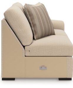- Low-profile accent legs with faux wood finish