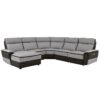 Providing ample seating for your friends and family is the Laertes Collection. The classic sectional shape is book-ended by stationary chaise options or USB port enhanced end power recliners. Taupe gray top grain leather provides a gentle touch while darker tone fabric lends stark contrast. The power reclining mechanism bring you to your desired position with a touch of the button.