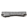 Providing ample seating for your friends and family is the Laertes Collection. The classic sectional shape is book-ended by stationary chaise options or USB port enhanced end power recliners. Taupe gray top grain leather provides a gentle touch while darker tone fabric lends stark contrast. The power reclining mechanism bring you to your desired position with a touch of the button.