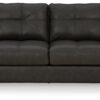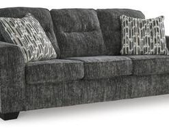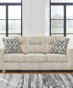 This sofa speaks to those drawn to fresh, contemporary style with richly neutral appeal. Subtle and sophisticated, the plush upholstery and dark tri-block legs are a natural complement for so many color schemes. Two accent pillows make the seating even more welcoming. Curling up on this sofa to enjoy a night in is never out of the question.