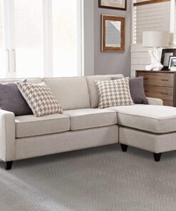 Ready to provide a sensible and stylish bonus to a transitional space, this sectional is a solid choice for a redesign. Perk up a living room or entertainment space with a comfortable and tasteful design. Configured for maximum flexibility, it accommodates sitting, lounging, and sleeping. An end lounge section adds a tasteful angled effect without taking up excessive space. With a gorgeous platinum upholstery and contrasting deep finish, tapered feet, it’s a wonderfully versatile selection.
