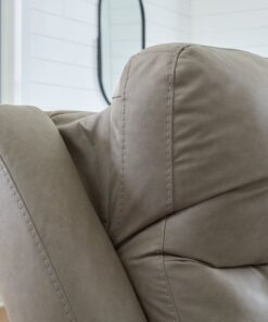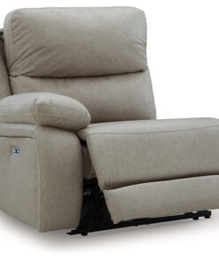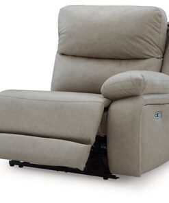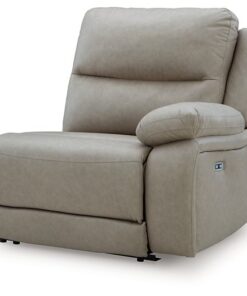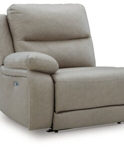 Experience ultimate comfort with this power reclining sectional. Generously cushioned with plush bustle back styling and pillow top track arms, it’s wrapped in a richly neutral upholstery that’s oh-so soft. Jumbo stitching gives the sectional added definition. A one-touch power control and USB charging take the pleasure of reclining to a higher level.