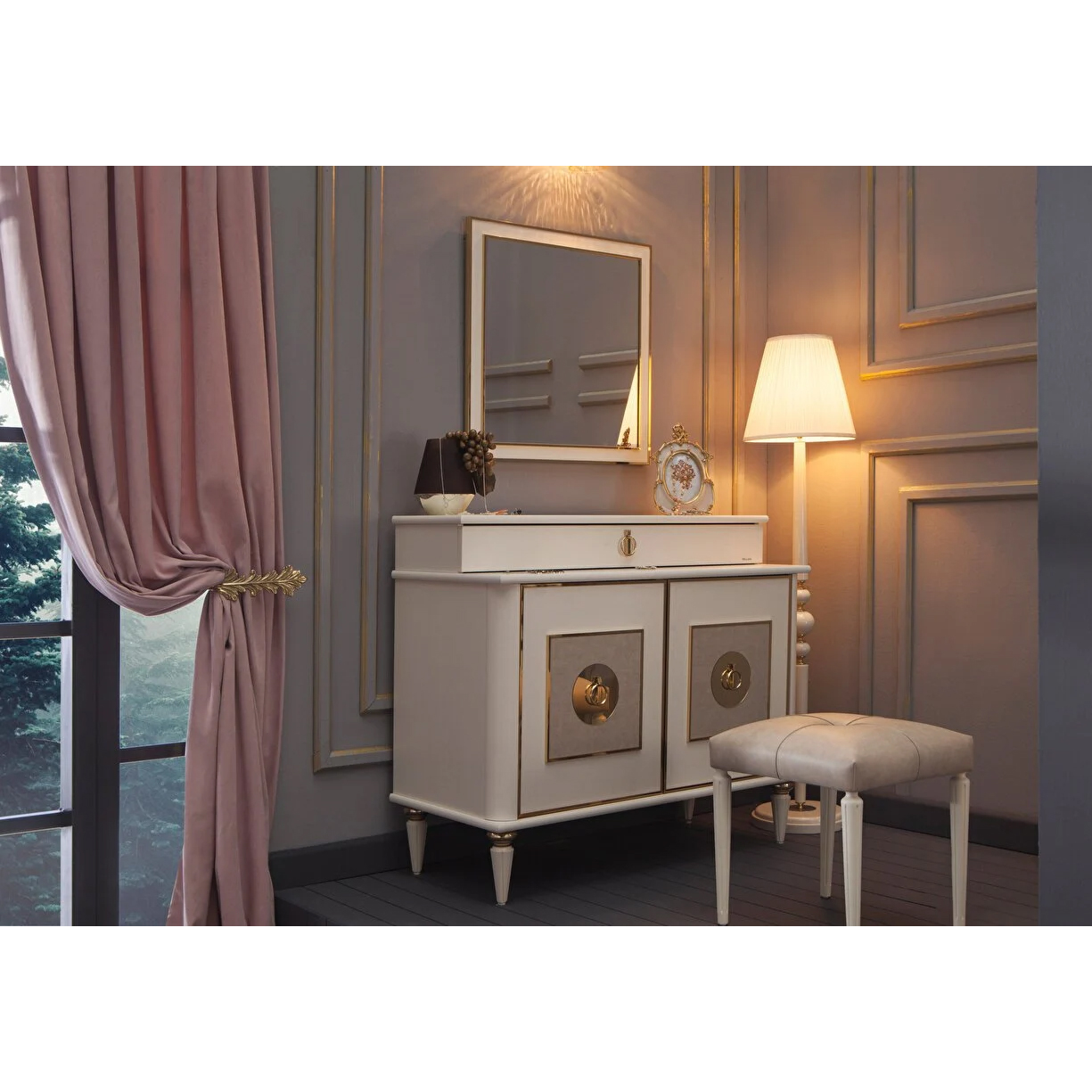 - Series Features: Opulent details and rich hues make a sophisticated statement in any room of the home. The Mistral Concept is an exclusive suite containing cohesive furniture collections for the living room, bedroom, dining room, and beyond. This concept checks every box on your home furnishing list, from tables, consoles, and wardrobes to sofas, chairs, and beds. Tastefully bold colors, chic gold accents, and eye-catching textures throughout this concept add an air of luxury to any space. The concept is littered with functional features like stain-resistant performance upholstery, ample storage space, and high quality materials crafted for comfort and long-lasting use