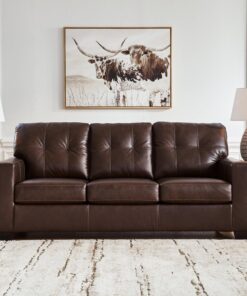 Whether your inspiration is contemporary or classic, this sofa’s good looks and affordable luxury are hard to deny. Its clean-lined silhouette and skillfully matched leather and faux leather upholstery offer a transitional sensibility that’s right at home in your home. And the ample cushions with tufted details invite you to relax in comfort.