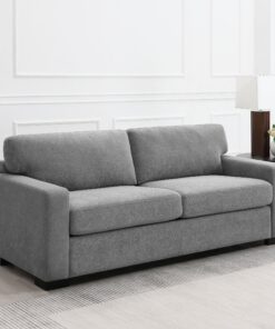 Center your stylish living space on a contemporary sleeper sofa. In light grey upholstery with a soft look and feel, it creates an inviting focal point while offering both daily seating and overnight accommodation. It features plush seating with spring supports and foam cushions for excellent comfort. The sofa features track arms, with wide block feet in a black finish that adds contrast and depth. Choose this sleeper sofa to bring style and flexibility to your home.
