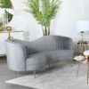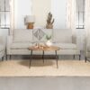 Elevate your mid-century modern living room seating area with this contemporary Chesterfield shelter style sofa, upholstered in a soft and smooth brown microfiber leather throughout its welt-trimmed and grid tufted seats and cushions. Plush and inviting with a bold vintage flair, this contemporary sofa sits on dark brown solid wood legs that flare and taper in a dramatic accent.