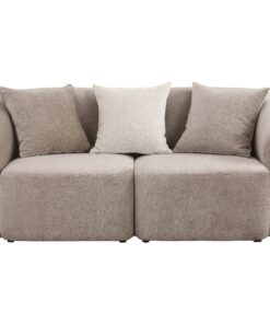 Augment living room seating with the inviting profile of a modern loveseat. Its curved shelter back and sloping arms establish a refined look and feel, while tailored upholstery offers curated appeal. The loveseat is upholstered in chenille with a neutral latte coloration and slight wavy pattern that creates a sense of movement and energy. Arms are slightly recessed, allowing seating to stand out and accentuating a thoughtful profile. Accent pillows feature feather blend fill and offer added comfort, perfect for lounging or entertaining.