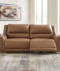 This power reclining sofa delivers comfort and contemporary style in a big (but not bulky) way. Its supple leather and faux leather upholstery, sumptuous cushioning and one-touch control are sure to take you to your happy place. The sofa’s power adjustable headrests let you fully recline and still be perfectly positioned to watch TV or read. And thanks to the convenient USB port, charging while chilling has never been easier.