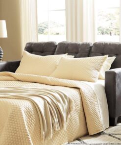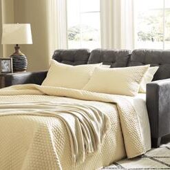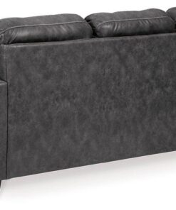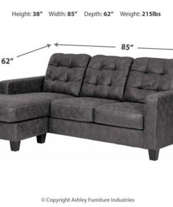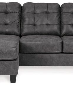 This ultra-contemporary sofa sleeper invites you to spread out and make yourself comfortable. Linear track arms offer a clean, sleek aesthetic, while tufted box cushions are a nod to mid-century design. Rest assured, a movable ottoman and reversible seat cushions allow you to place the chaise on either side for the perfect fit. Gunmetal gray faux leather offers the cool, weathered look you love and touchably soft feel you crave. Pull-out queen mattress in quality memory foam comfortably accommodates overnight guests.