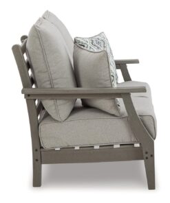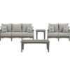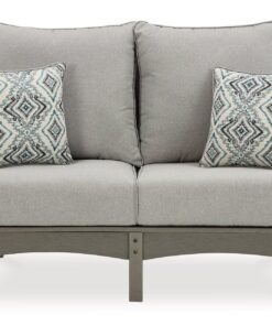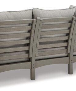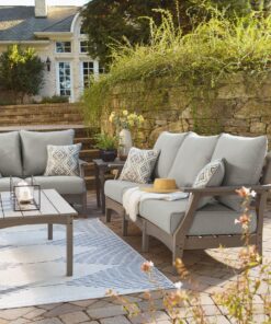 It’s the dawn of a new day for gray. Embrace the style trend with this outdoor set. Each piece is crafted of HDPE material, combining the exceptional durability and weather resistance you need with the ‚Äúwood look‚Äù you love. The coffee table and comfortably cushioned seats take alfresco living to a whole new level. A slatted table top infuses a plank-style, farmhouse-inspired touch and naturally sheds rainwater. Rest assured, the thick cushions on the sofa and loveseat are wrapped in Nuvella® high-performance fabric that’s fade-resistant, stain-resistant and a breeze to keep clean.