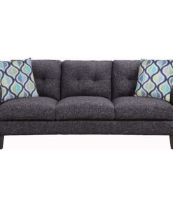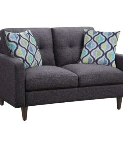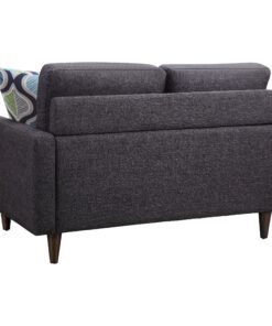 Add a retro twist to a living room with this two-piece living set. With delicate tufting on the back cushions, this sofa is structured and elegant. Upholstered in grey fabric, the smooth cushions add a sleek feel. Elongated and tapered, the warm legs create a mid-century modern-inspired look. Enjoy a movie or conversation on the refined cushions of the sofa or loveseat.